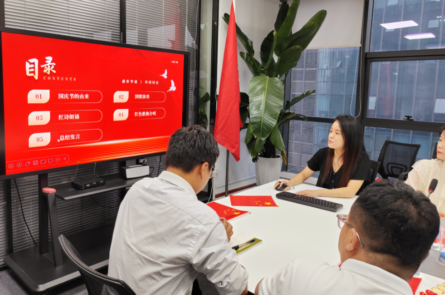 接下來,全公司齊聲高唱國歌,當(dāng)“起來,不愿做奴隸的人們……”的旋律響起,莊嚴(yán)而激動人心的歌聲回蕩在每一個角落。我們深切感受到了祖國的偉大和民族的自豪。
