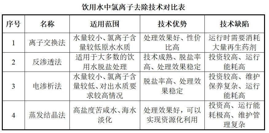 綜上所述,在選擇飲用水中氯離子去除技術時,需要綜合考慮水質標準、水源特性、技術性能、成本效益等因素,并遵循安全性、高效性、經濟性、穩(wěn)定性和可擴展性等原則。